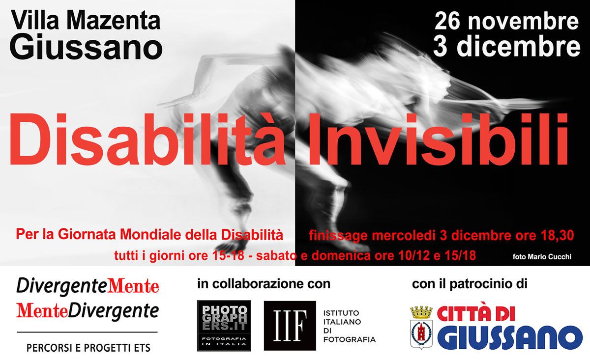 Dopo il successo dell’ultima esposizione, torna a Villa Mazenta un nuovo progetto espositivo di DivergenteMente ETS – Percorsi & Progetti, dedicato a un tema di grande attualità e sensibilità sociale: “Disabilità Invisibili”, visitabile dal 26 novembre al 3 dicembre 2025. La mostra si inserisce nel percorso culturale promosso dall’Associazione in collaborazione con Photographers.it e l’Istituto Italiano di Fotografia (IIF), con il patrocinio del Comune di Giussano.