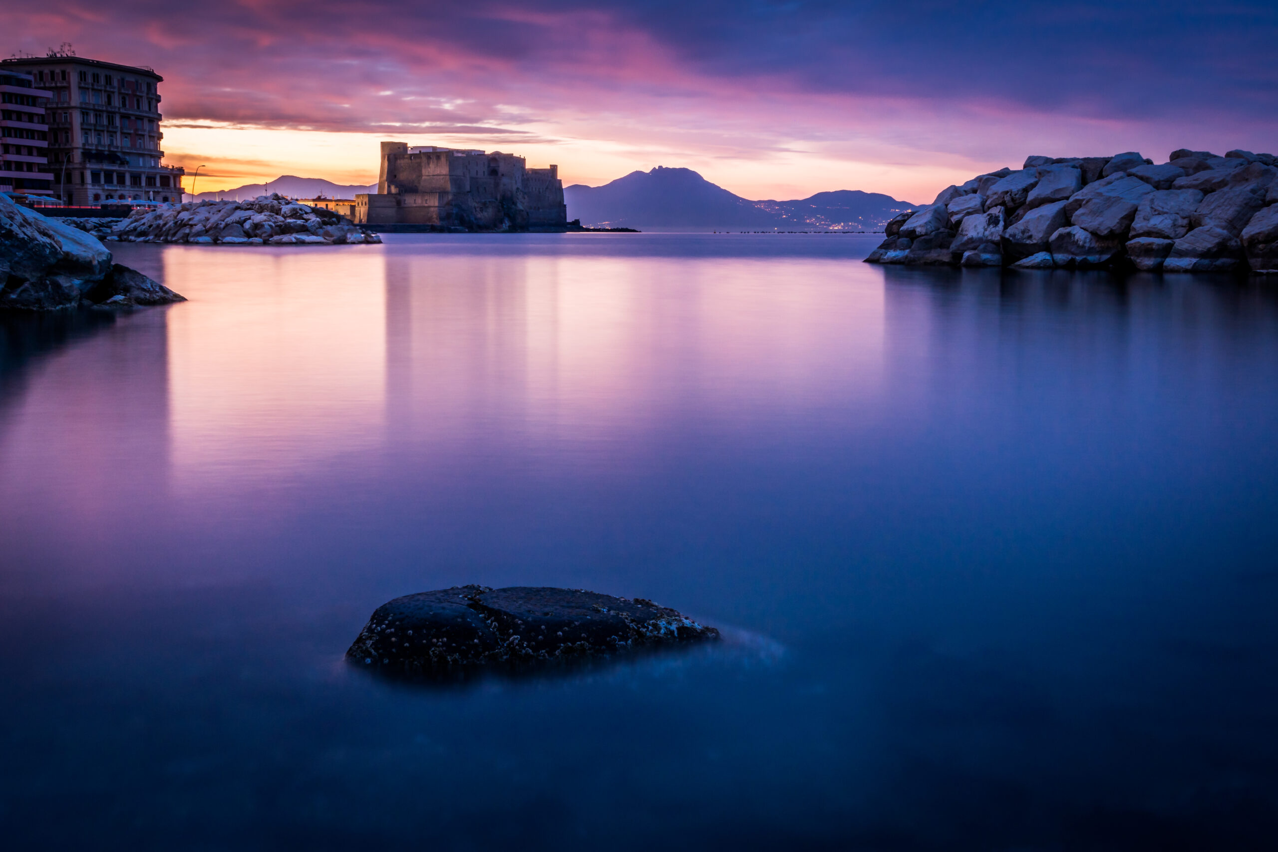 Gian Paolo Russo, che scatta principalmente all’alba, utilizza spesso tempi lunghi per creare effetti di movimento o per sospendere il tempo, con colori vividi che vanno dal blu intenso all’arancione.